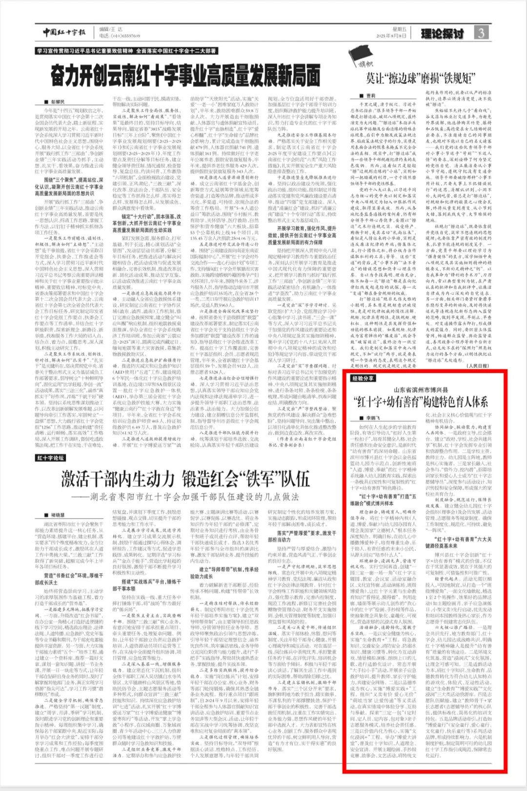 8月8日,《中国红十字报》刊发博兴县红十字会红十字会文章《红十字+幼有善育构筑特色育人体系》