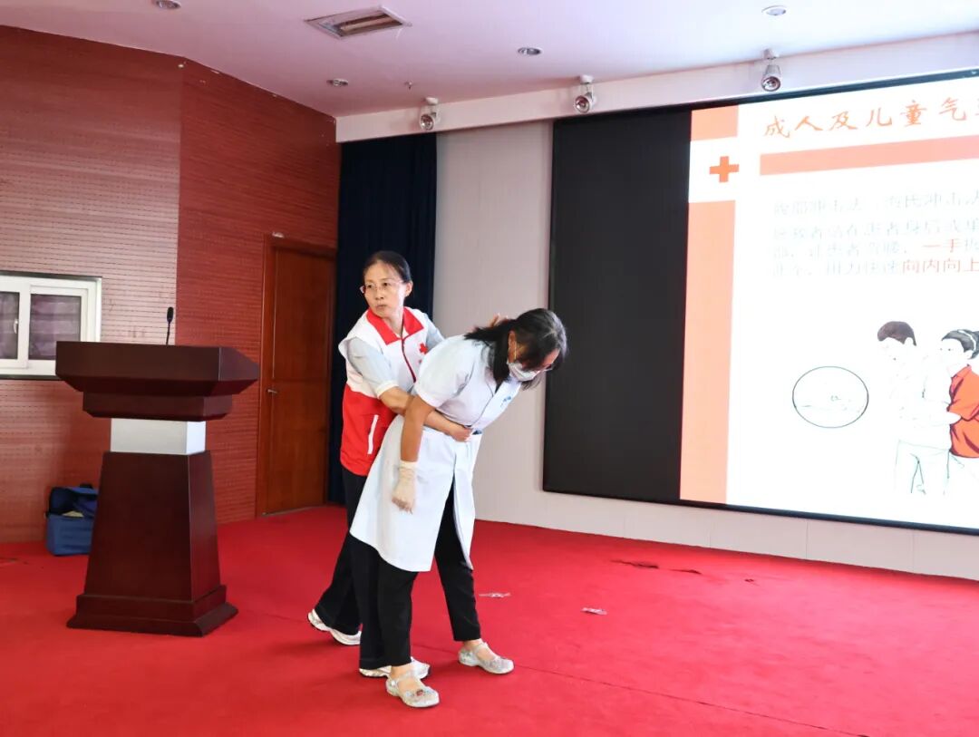 首个重要环节是应急救护技能培训。县红十字会专业讲师穆晓燕采用“理论讲解 + 实操演示” 的模式,为大家传授‘黄金四分钟’的急救知识与技能,确保每位参训教职工都能学懂、弄通、会用。