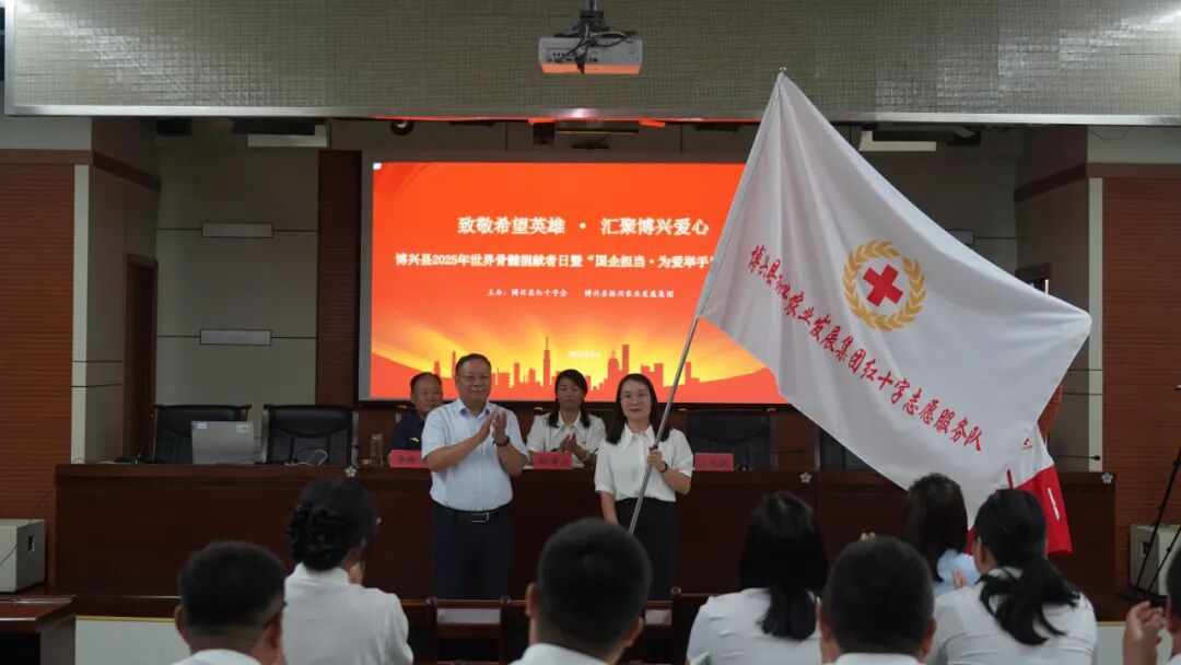 活动的高潮出现在庄重的授旗仪式环节。县红十字会党组书记、常务副会长王兆鹏正式向县农发集团造血干细胞捐献志愿服务队授予队旗。这面旗帜象征着荣誉,更代表着责任与使命,标志着又一支强有力的志愿队伍将投身于造血干细胞捐献的宣传、动员与服务工作之中,为博兴县的公益事业注入新的活力。